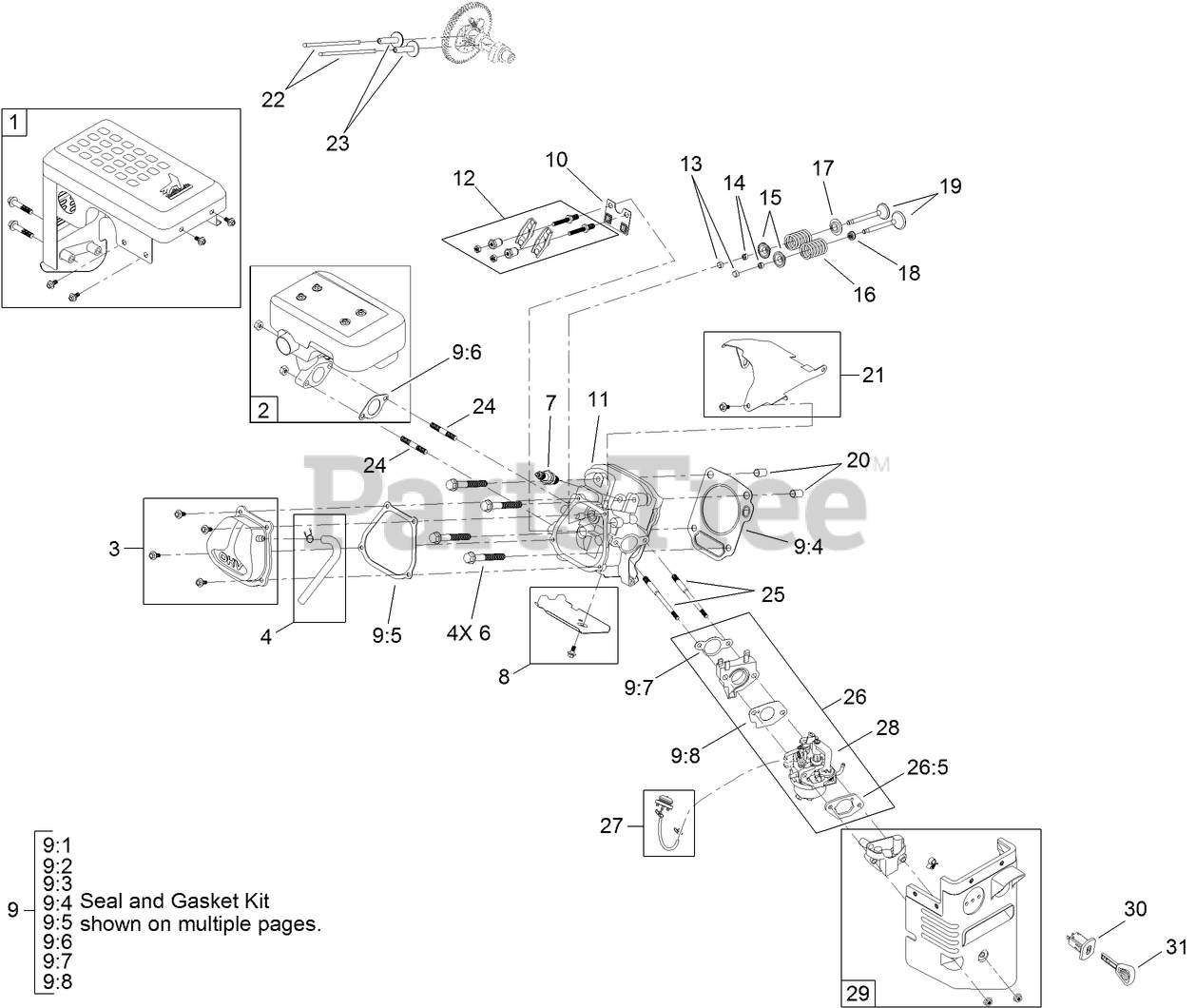 Muffler, Cylinder Head and Carburetor Engine Assembly Parts Diagram