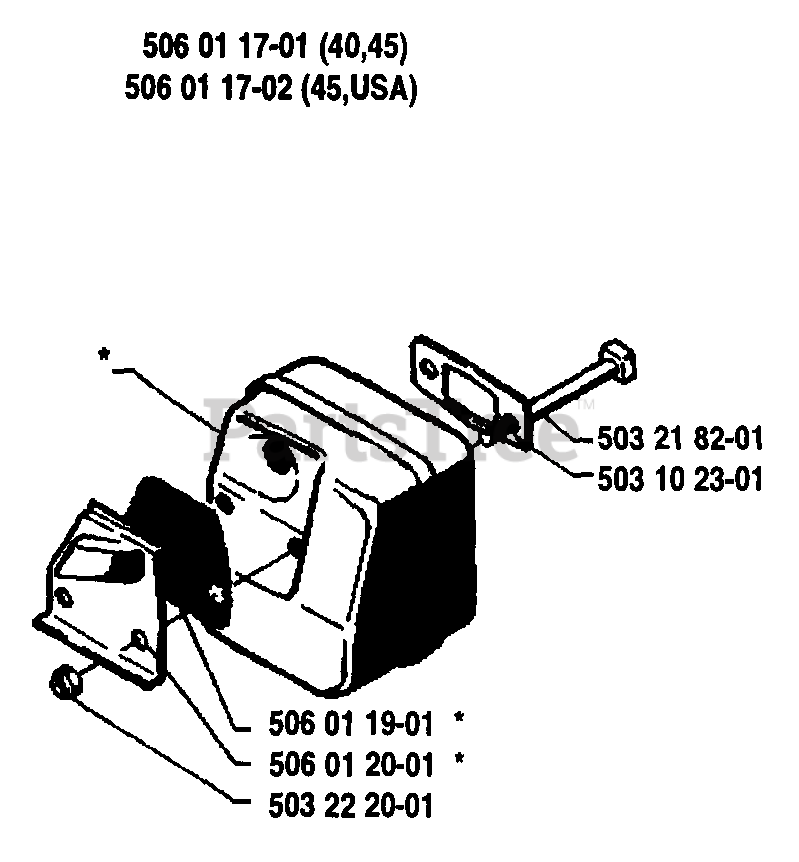 45 - Husqvarna Chainsaw (1988-02) Muffler Parts Diagram