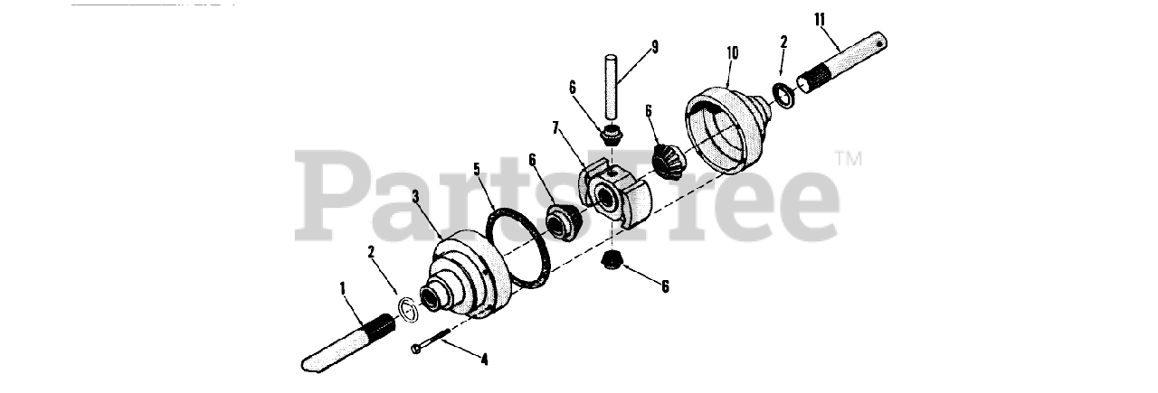 Note: Bevel Gear and Pinions sold as a kit only. Includes 2 Snap Rings, Ref. 2