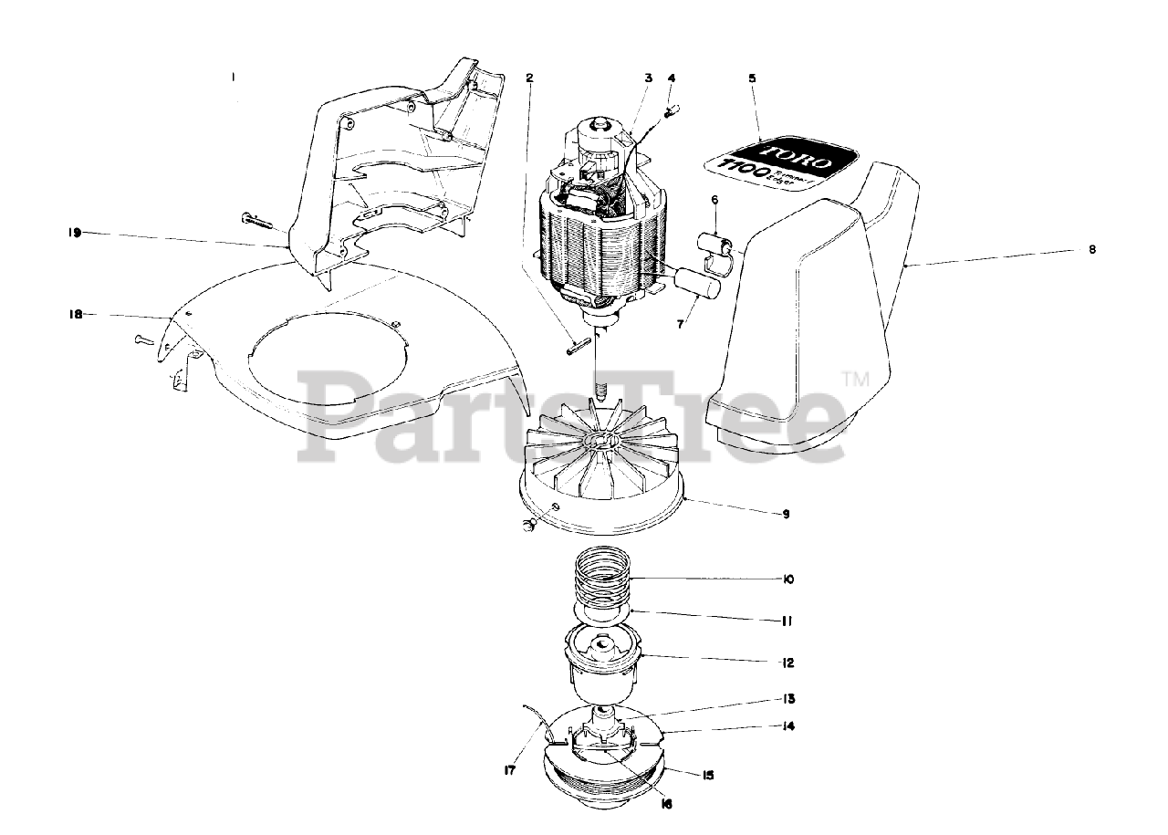 51316 (1100) - Toro String Trimmer, Electric (SN: 001000001 - 001999999) (1981) Motor Housing Assembly Parts Diagram