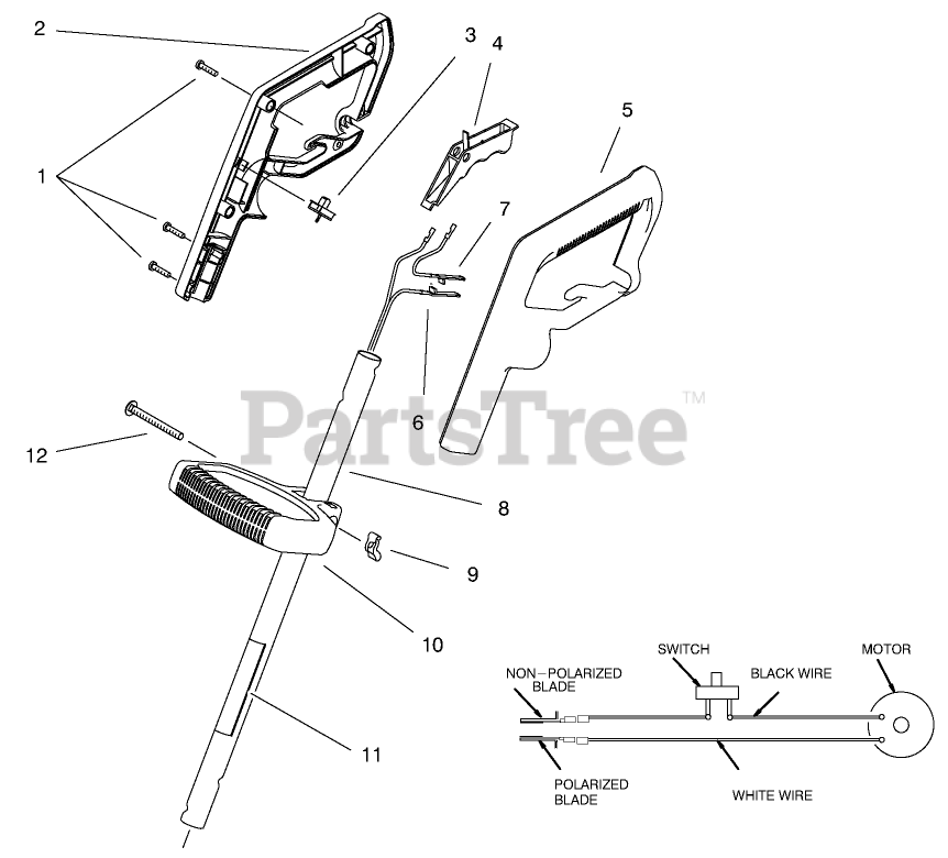 51324 - Toro 12" String Trimmer, Electric (SN: 099000001 - 099999999) (1999) Handle Assembly Parts Diagram