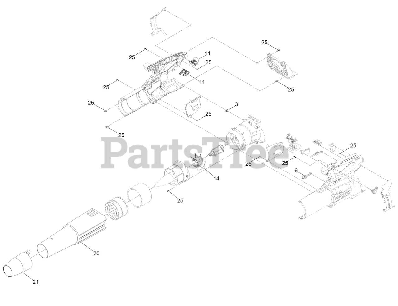 Flex-Force Power System 60V MAX Leaf Blower AssemblyParts Diagram