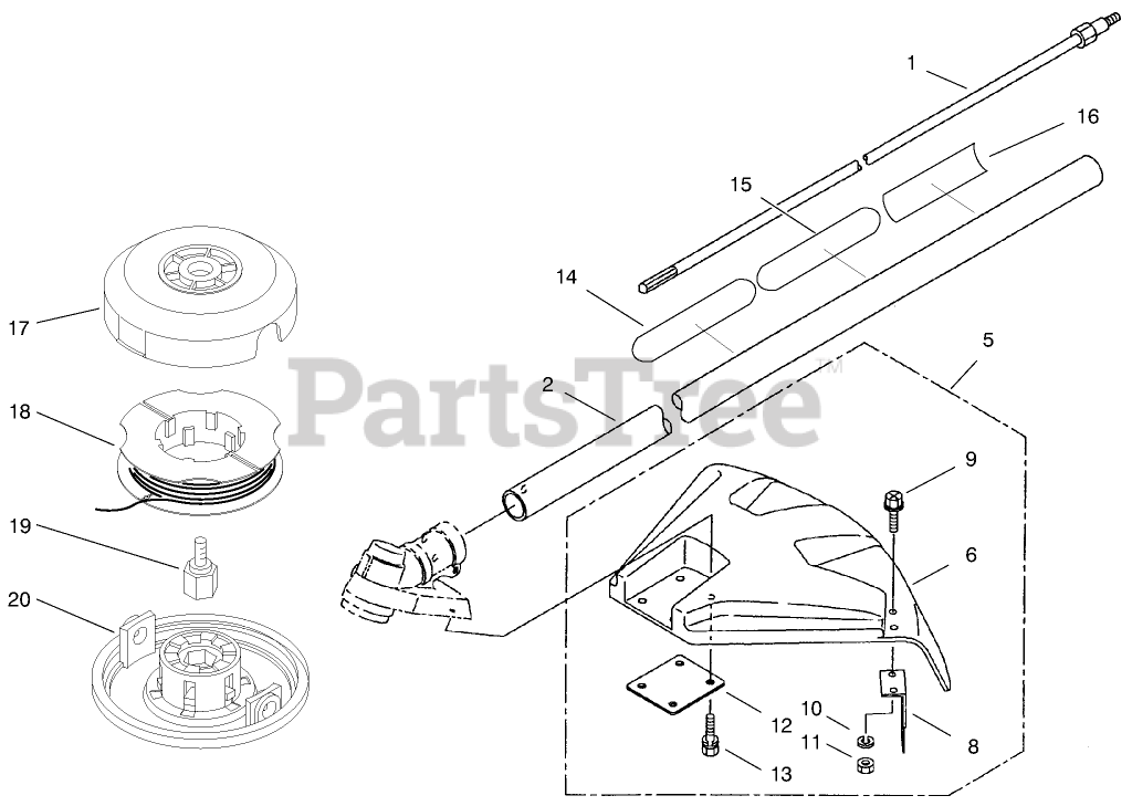 53002 (53005) - Toro Straight Shaft Trimmer (SN: 089005001 - 089009999) (1998) Head, Shaft And Shield Assembly Parts Diagram