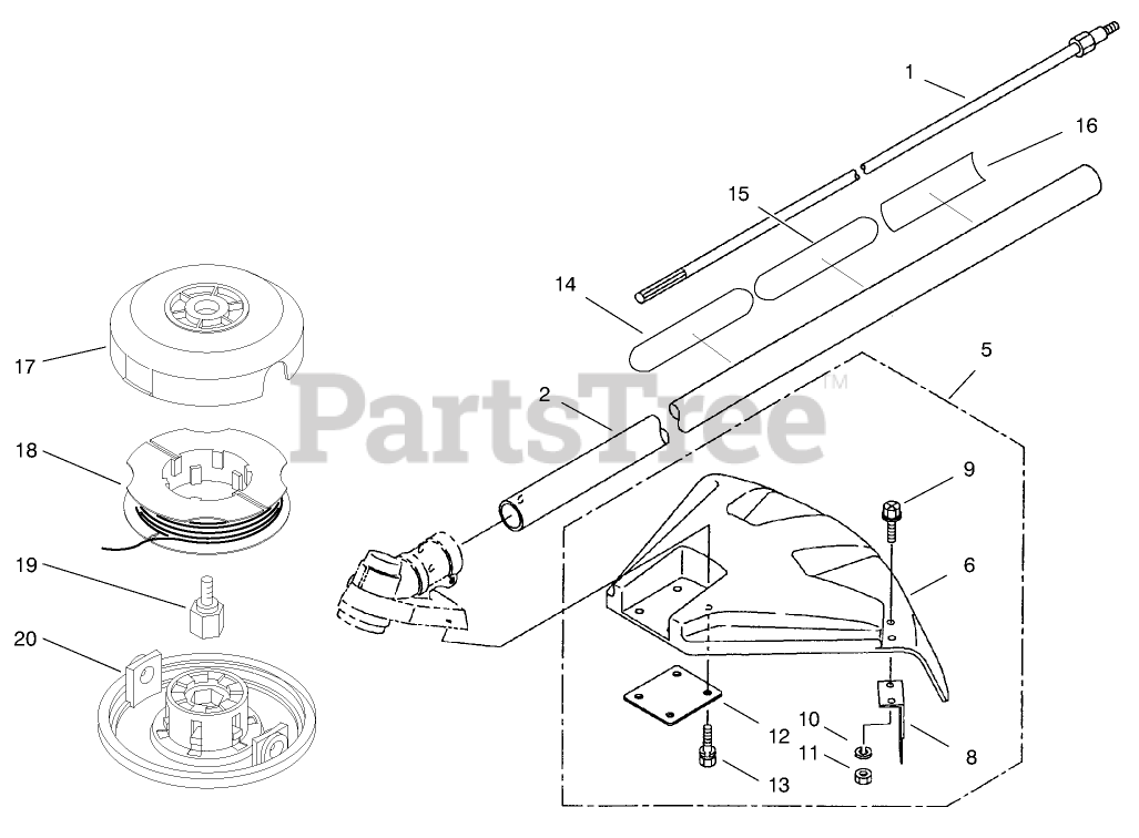 53003 (53005) - Toro Straight Shaft Trimmer (SN: 089005001 - 089009999) (1998) Shaft And Shield Assembly Parts Diagram