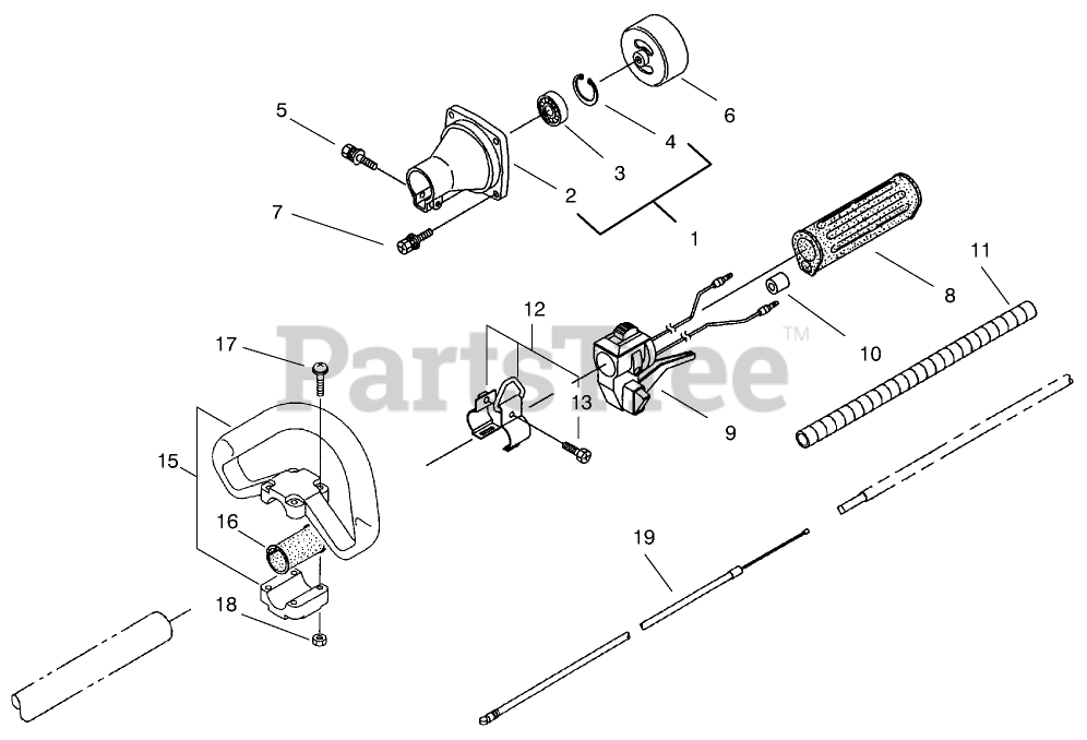 53009 - Toro String Trimmer, Straight Shaft (SN: 099000001 - 099999999) (1999) Clutch And Handle Assembly Parts Diagram