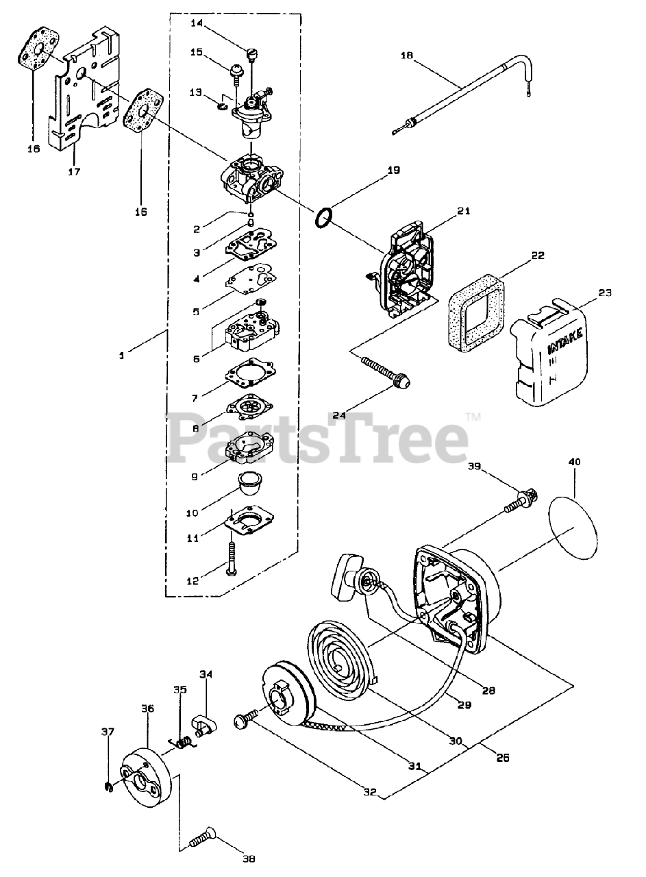 Carburetor And Starter Assembly Parts Diagram