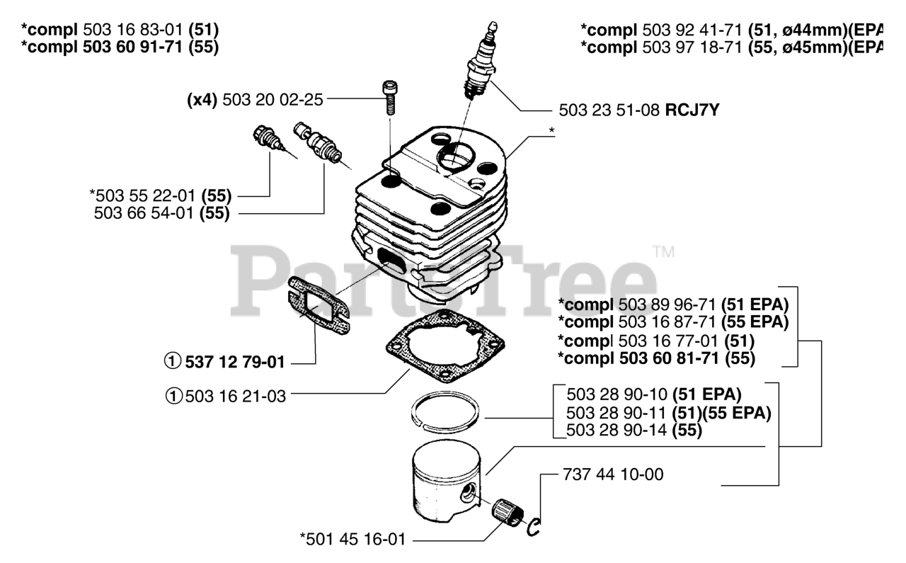 55 EPA - Husqvarna Chainsaw (2000-05) Piston / Cylinder Parts Diagram