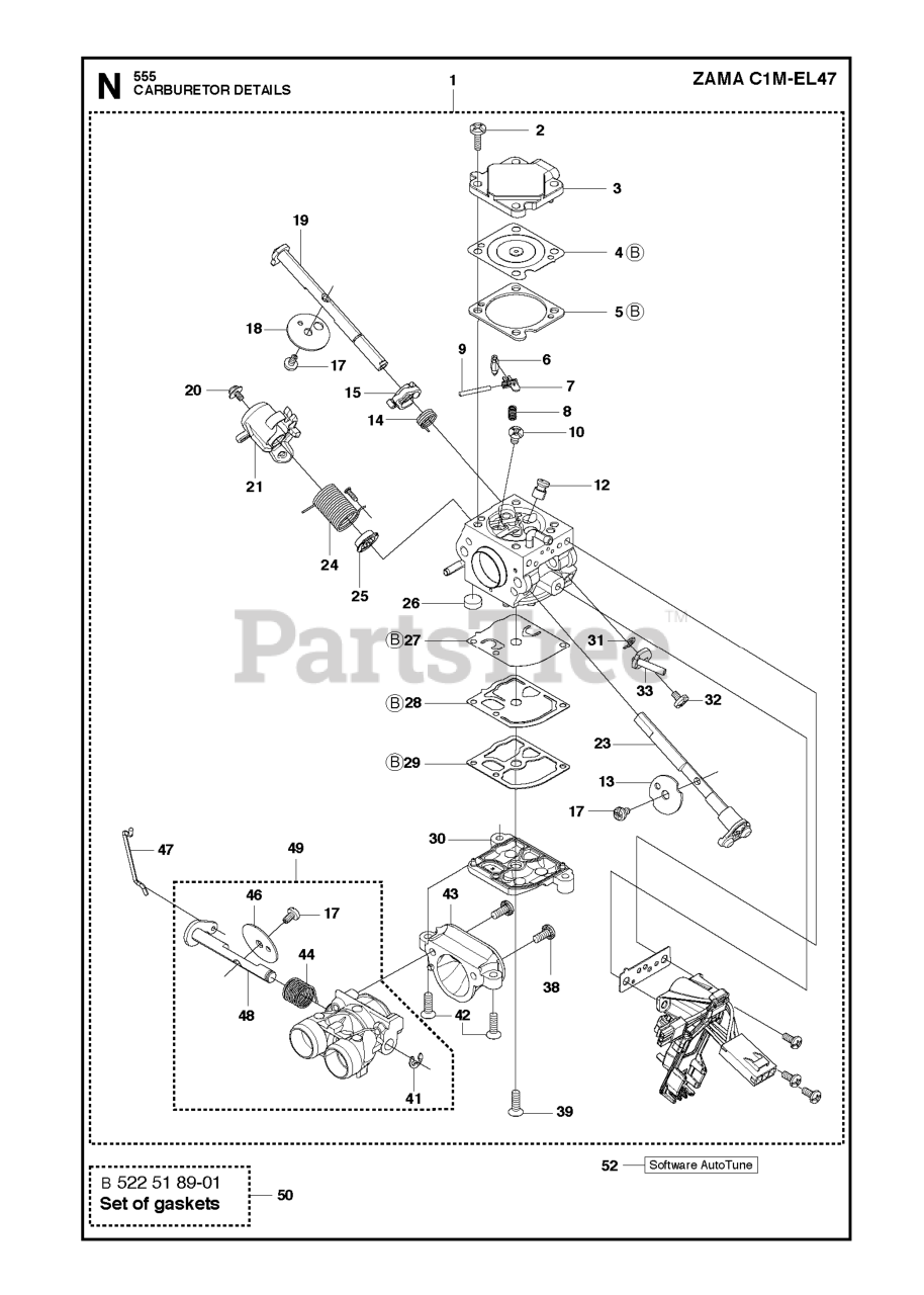 555 - Husqvarna Chainsaw (2013-01) CARBURETOR DETAILS Parts Diagram
