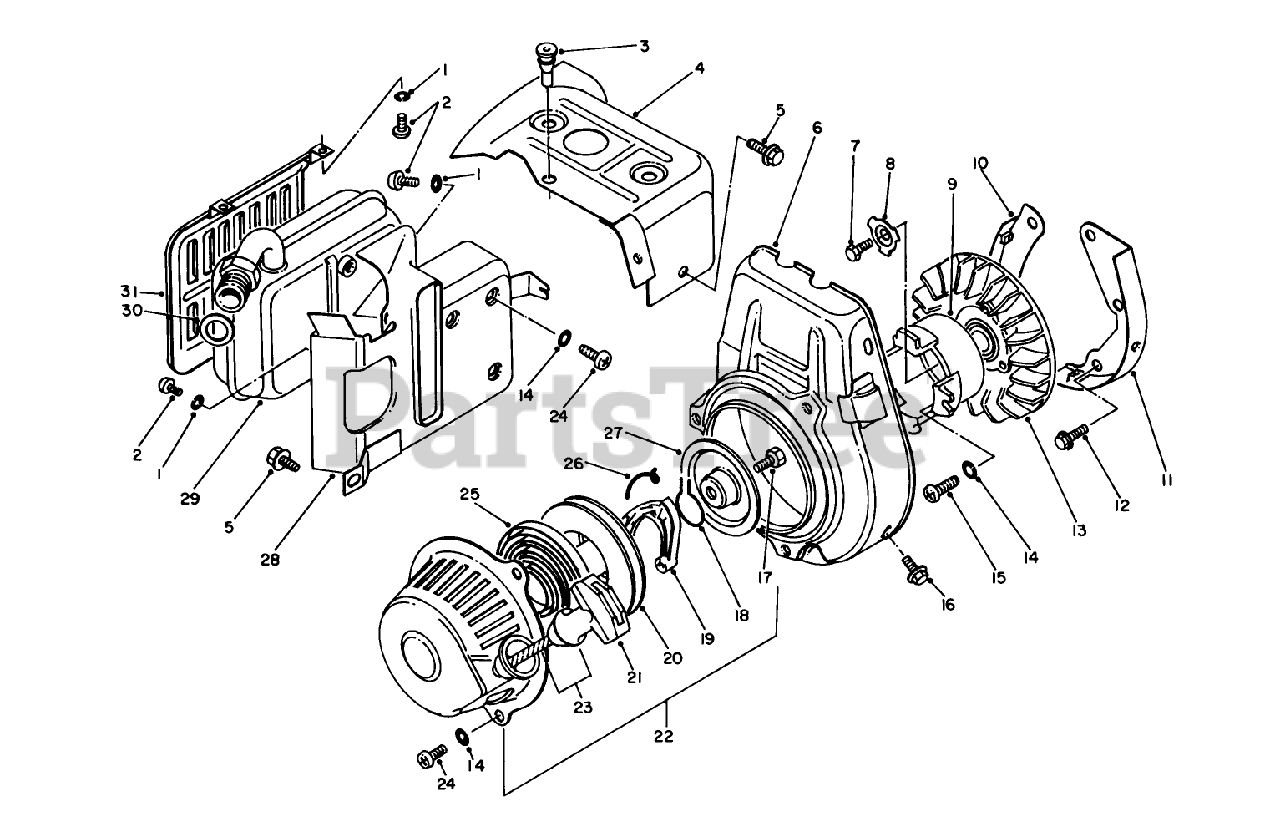 62005 (T 500) - Toro Generator (SN: 003000001 - 003999999) (1983) Starter-Exhaust Assembly Parts Diagram