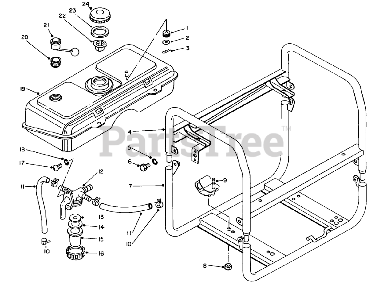 62012 (T 1200) - Toro Generator (SN: 008000001 - 008999999) (1988) Fuel Tank Frame Assembiy Parts Diagram