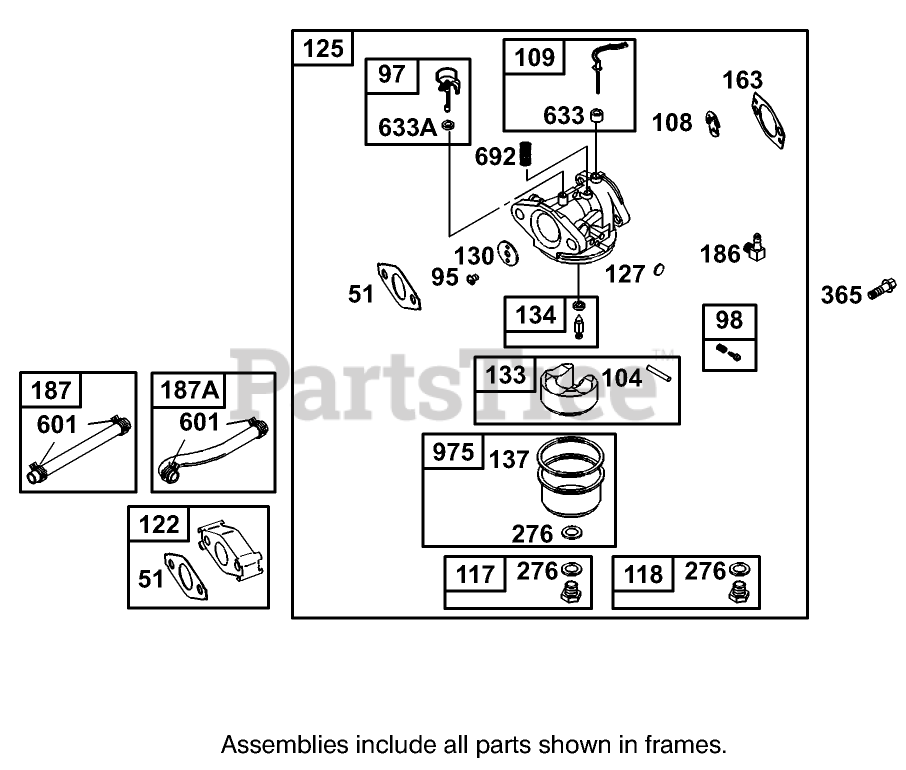 Carburetor Assembly Briggs And Stratton Model 110402-0218-E1 Parts Diagram