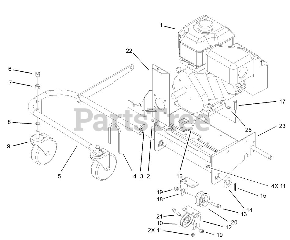 Engine and Wheel Support Assembly Parts Diagram