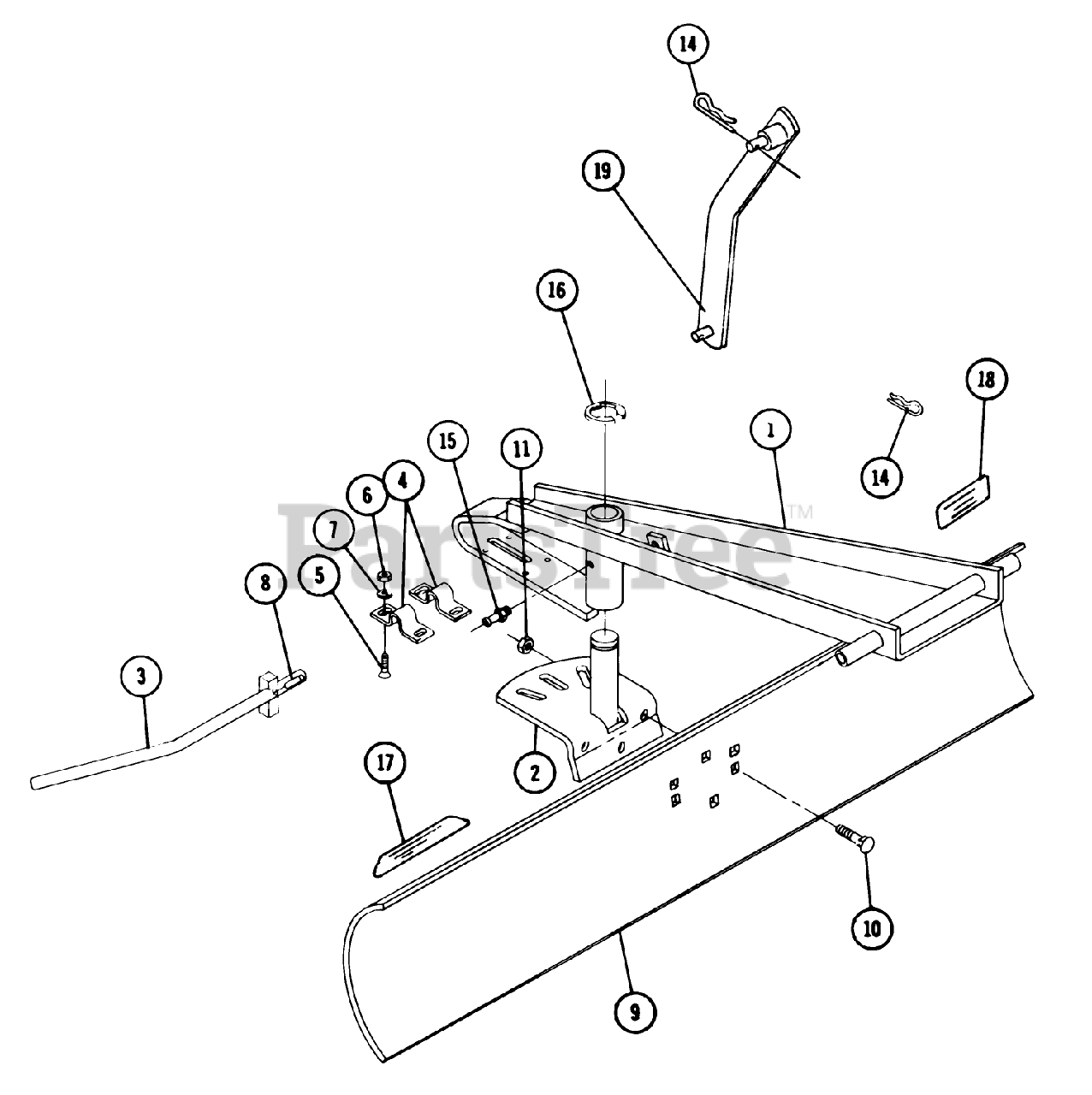 67-40BM01 - Toro 40" Grader Blade (1976) Parts List-Mid-Mounted Grader Blade (factory Order Number 67-40bm01) Parts Diagram