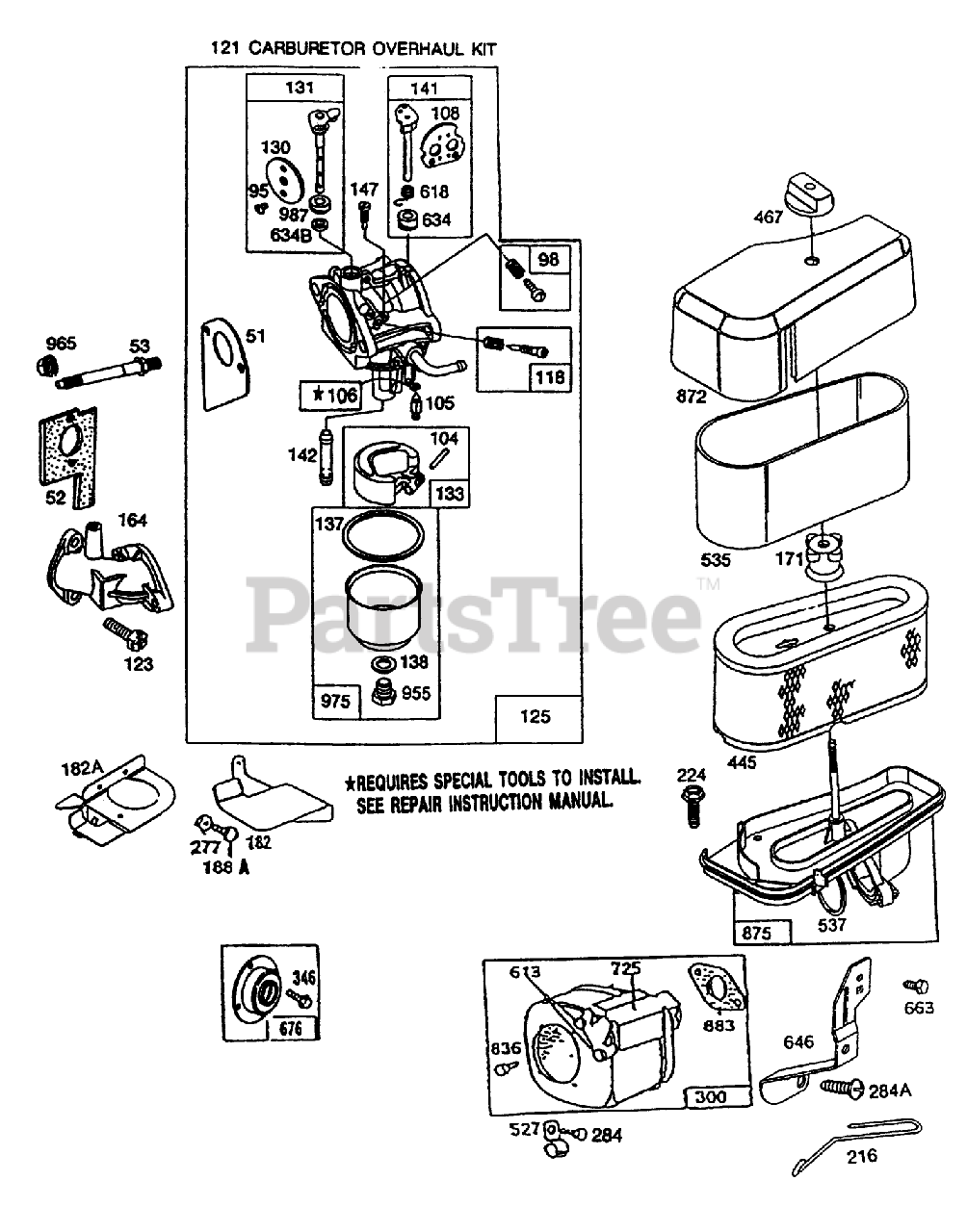 Kit-Overhaul, Carburetor (Incl. Ref. #51, 95, 104, 105, 106, 137, 138, 142, 147, 634, 634B 987)