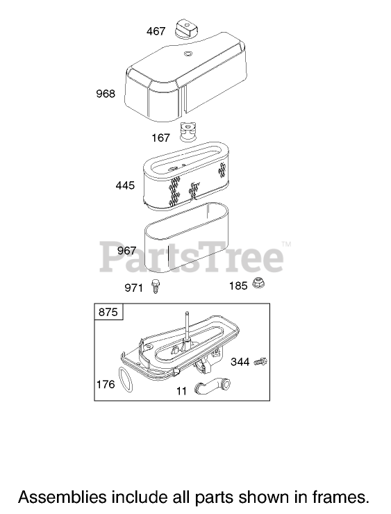 Air Cleaner Assembly Engine Briggs and Stratton Model 28M707-1127-E1 Parts Diagram