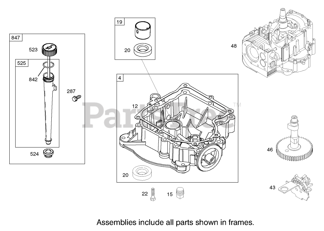 Crankcase Assembly Engine Briggs and Stratton Model 28M707-1127-E1 Parts Diagram