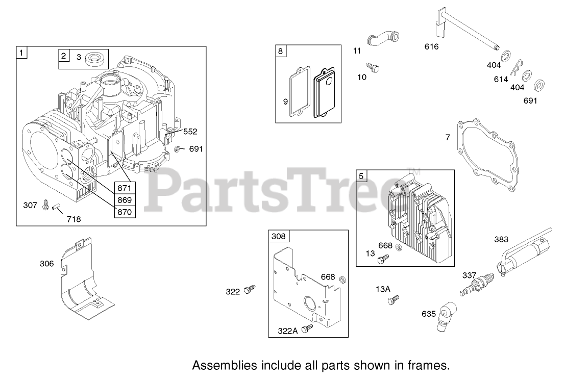 Cylinder Assembly Engine Briggs and Stratton Model 28M707-1127-E1 Parts Diagram