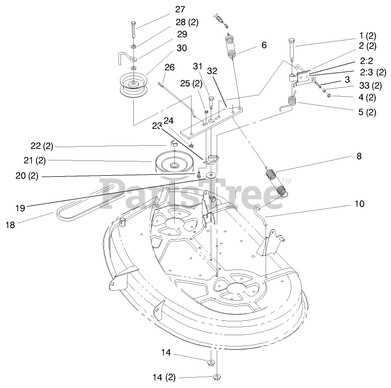 Pulley Belt Assembly (38" Cutting Unit) Parts Diagram