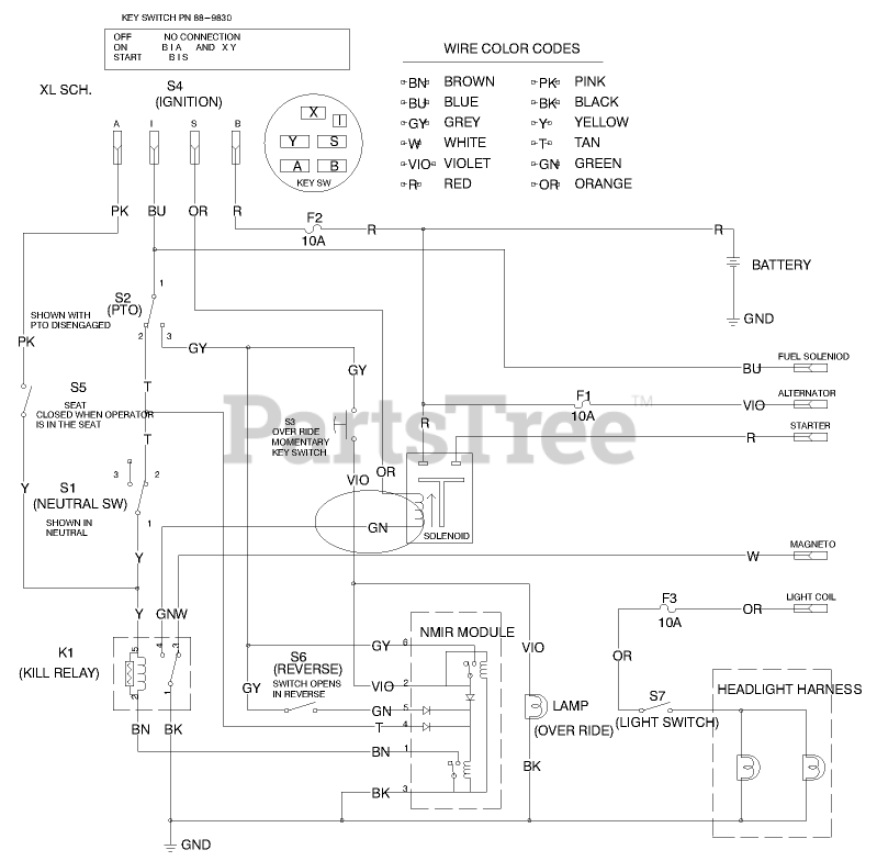 71199 (12-32 XL) - Toro Lawn Tractor (SN: 099000001 - 099999999) (1999) Wire Schematic Parts Diagram