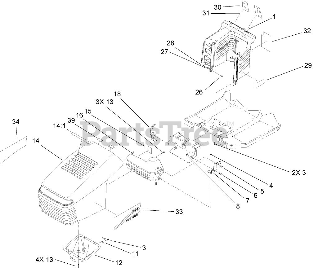 Hood and Tower Assembly Parts Diagram