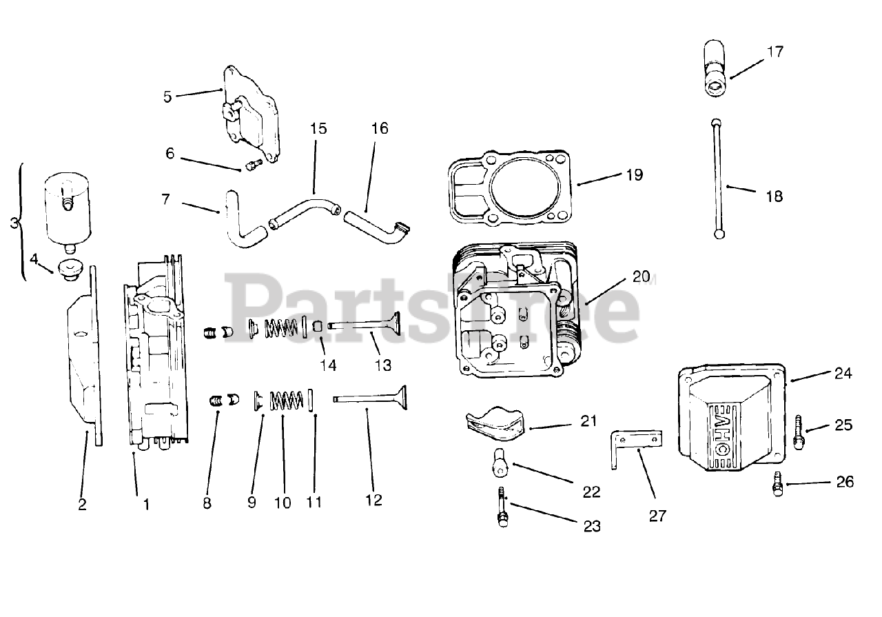 72043 (264-H) - Toro Yard Tractor (SN: 059000001 - 059001475) (1995) Head/valve/breather (kohler Engine Cv16s-Ps61514) Parts Diagram