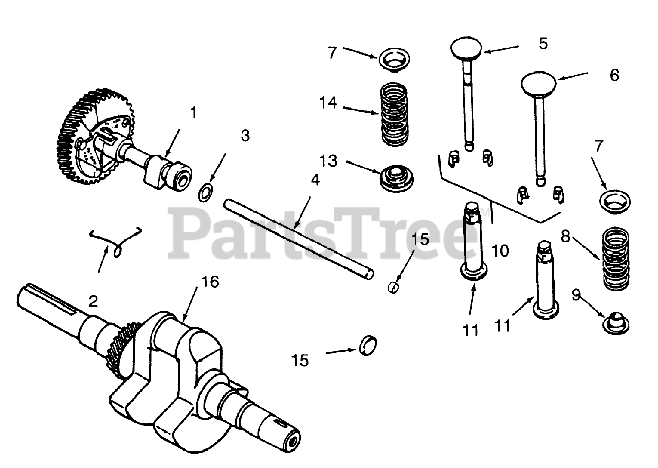 Camshaft, Crankshaft And Valves Parts Diagram