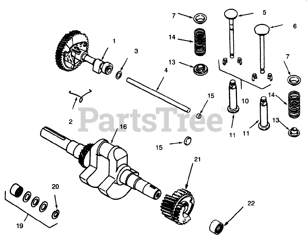 Camshaft, Crankshaft And Valves Parts Diagram
