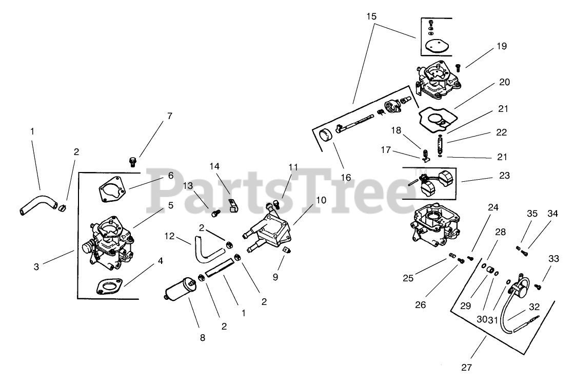 Carburetor assembly (Includes 15-35)
