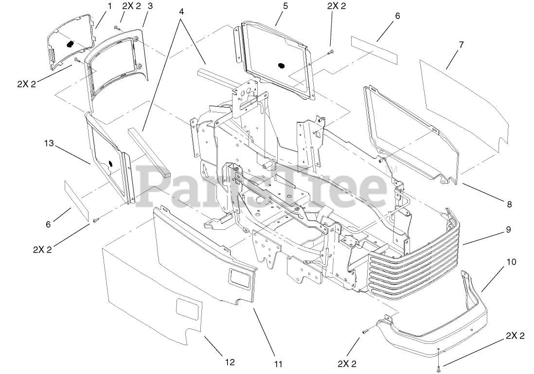73590 (523 Dxi) - Toro Garden Tractor (SN: 220000001 - 220999999) (2002) Grill Side Panels Assembly Parts Diagram