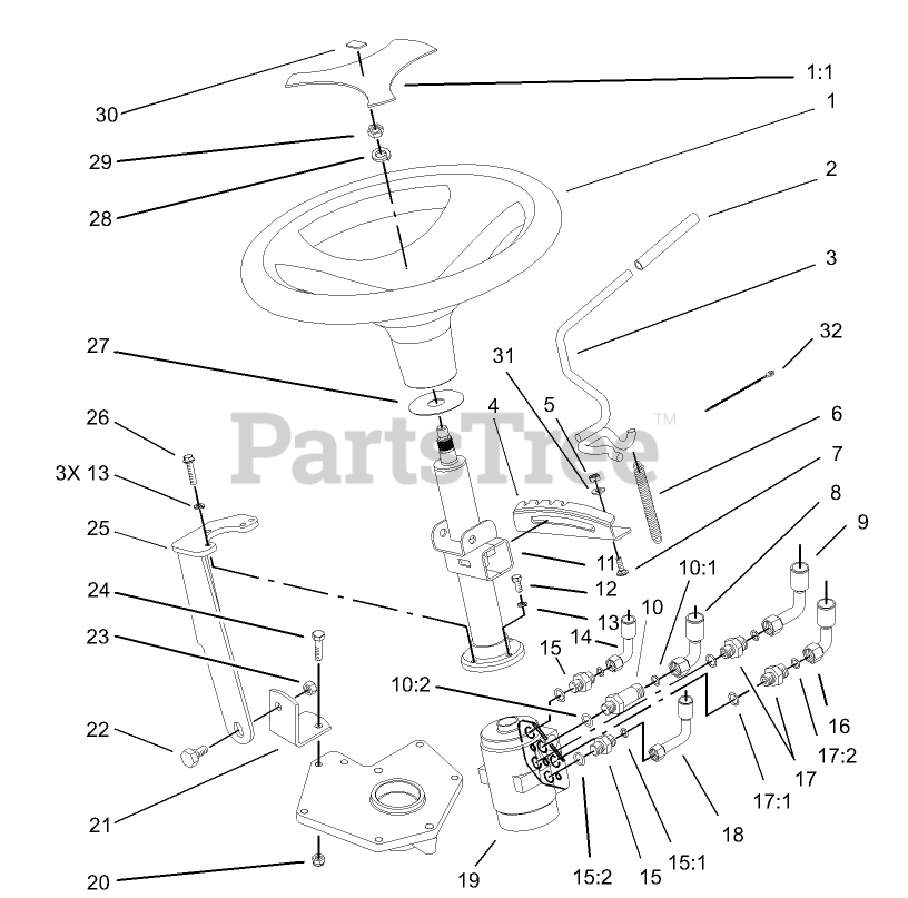Power Steering Tilt Assembly Parts Diagram