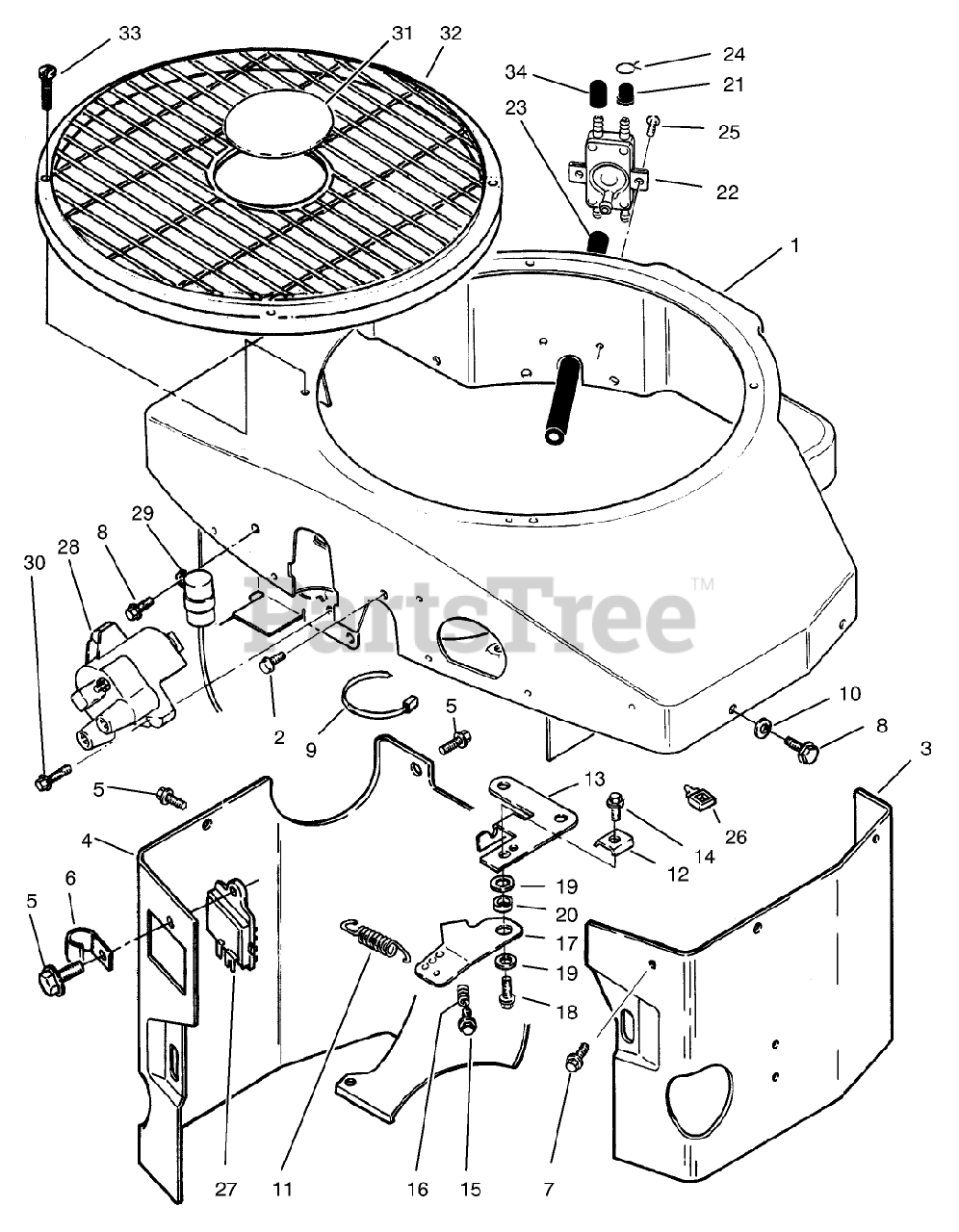 74120 (616-Z) - Toro Zero-Turn Mower, Drive Unit Only (SN: 059000001 - 059999999) (1995) Covers, Fuel Pump Coil, Regul.ator Governor Linkage Assembly Parts Diagram