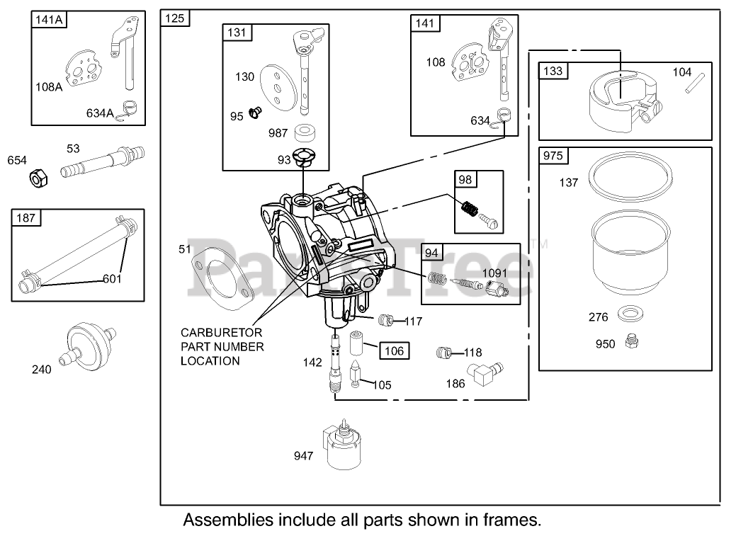 Carburetor Assembly Engine Briggs and Stratton Model 286H77-0165-E1 Parts Diagram