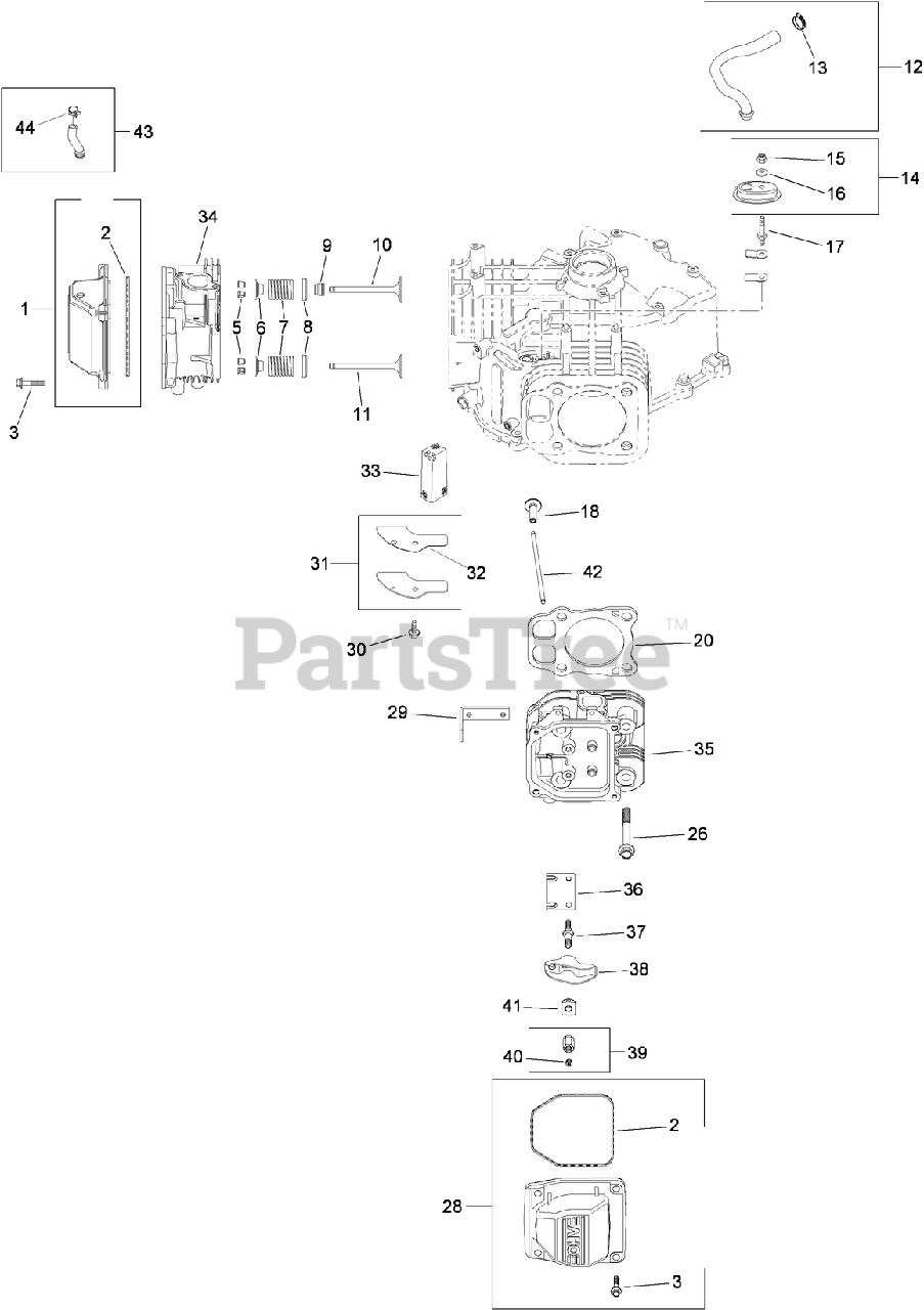 Head, Valve and Breather Assembly Kohler SV730-0029 Parts Diagram