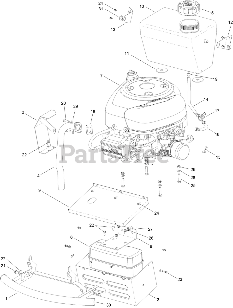 74560 (DH 140) - Toro Lawn Tractor (SN: 311000001 - 311999999) (2011) Engine Assembly Parts Diagram