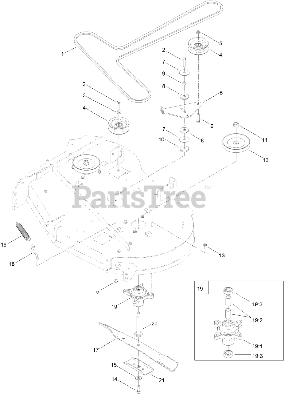 42 Inch Deck, Belt and Blade Assembly Parts Diagram