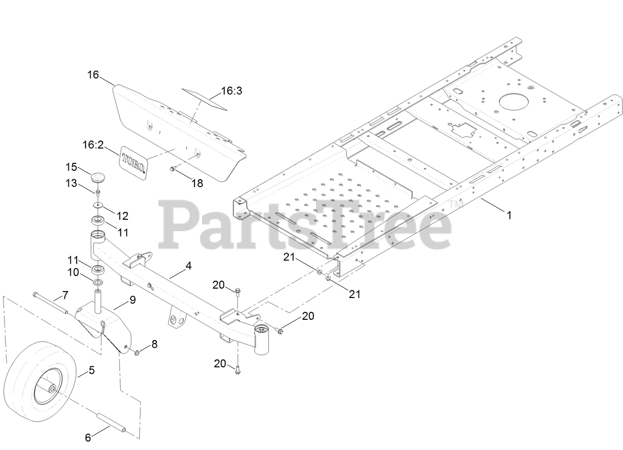 Frame, Front Axle and Caster Wheel Assembly Parts Diagram