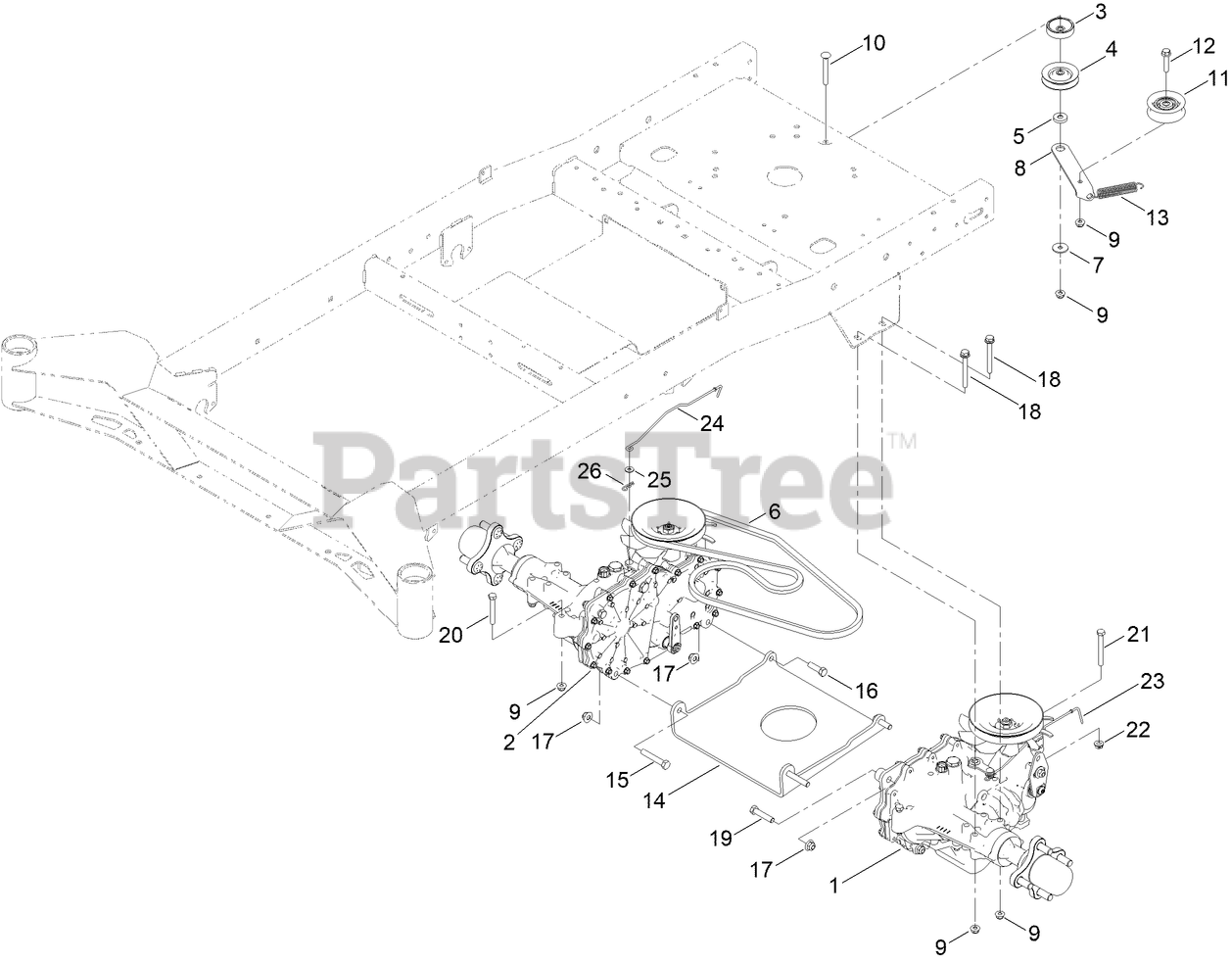 76606 - Toro 60" Titan MAX Zero-Turn Mower (SN: 417515889 - 999999999) Transaxle Assembly Parts Diagram
