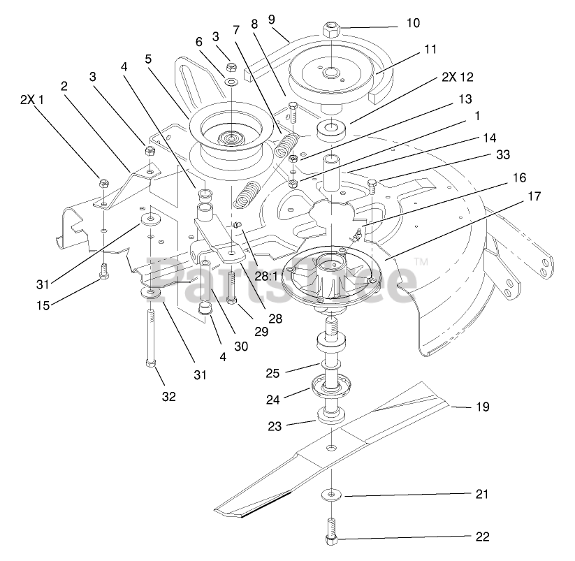 Blade, Spindle And Pulley Assembly Parts Diagram