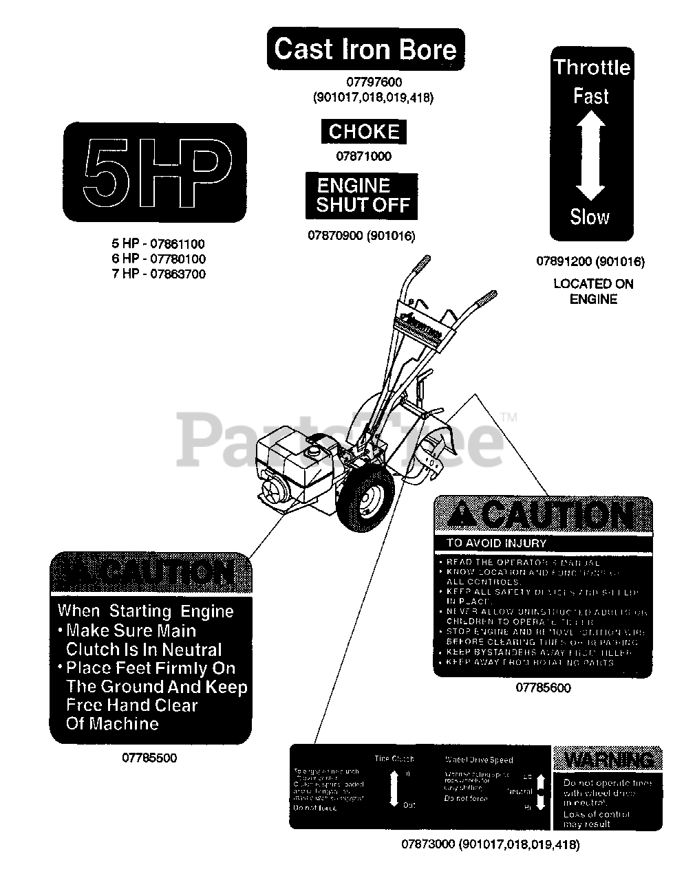 901418 (RT 8020) - Ariens 20" Rear Tine Tiller, 8hp Kohler (SN: 000101 & Above) Decals (Part 1) Parts Diagram