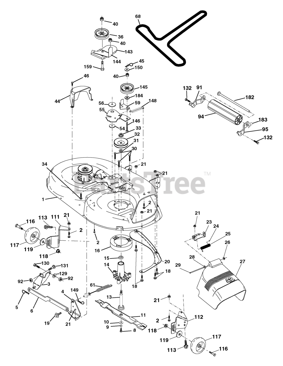 Note: (Std. deck Order separately gauge wheel componants Key Nos. 116- 119)