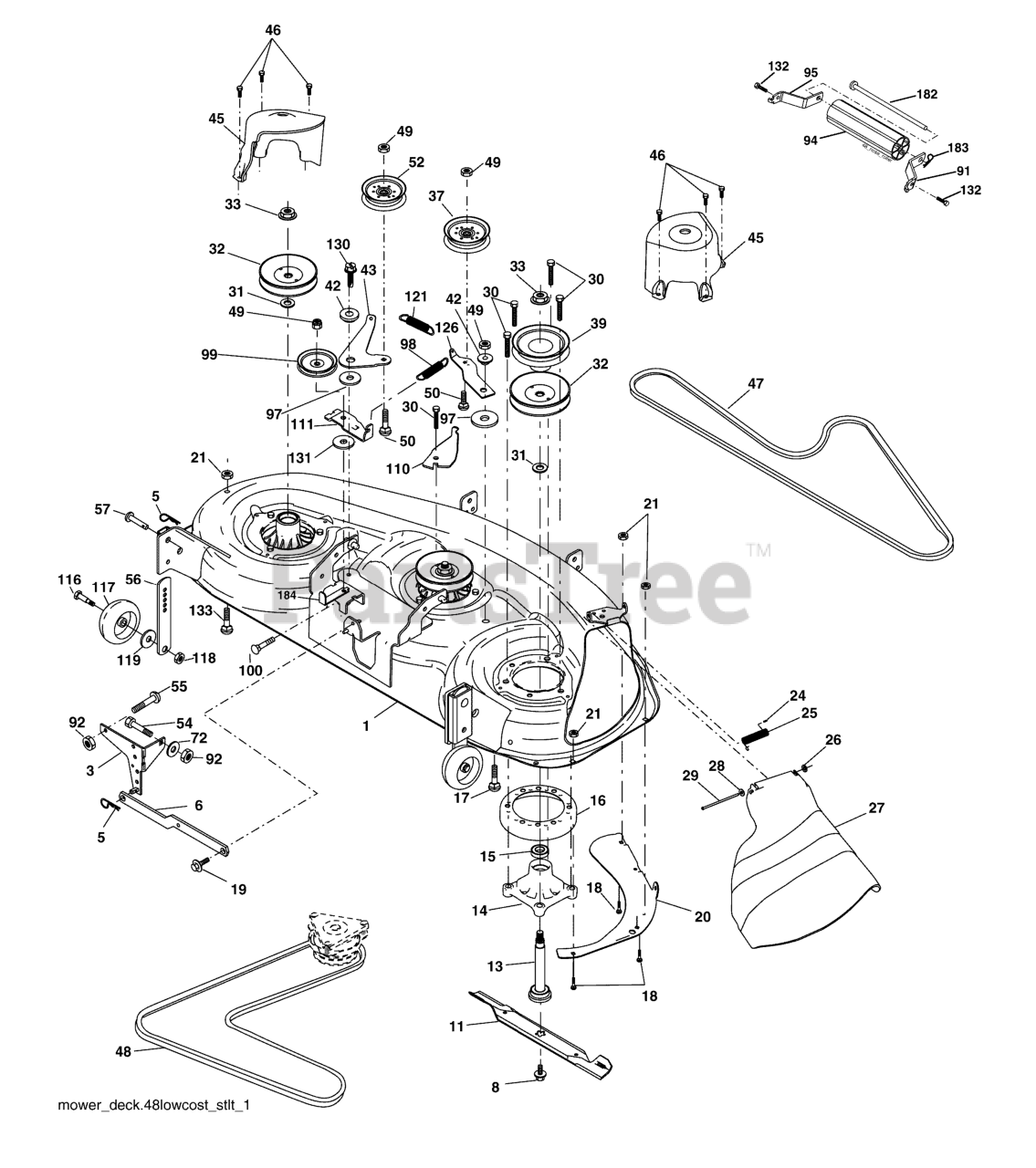 Note: Std Deck-Order Separately Nose Roller Components Key Nos. 91, 94, 95, 132, 182-183