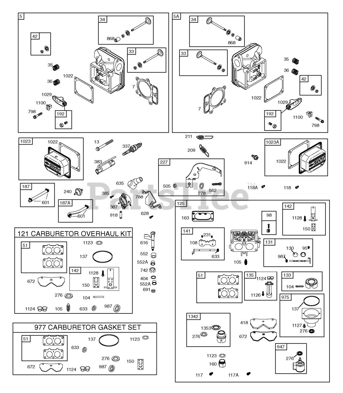 Note: Included in Engine Gasket Set, Key. No. 358,Included in Carburetor Overhaul Kit, Key. No. 121,Included in Carburetor Gasket Set, Key. No. 977