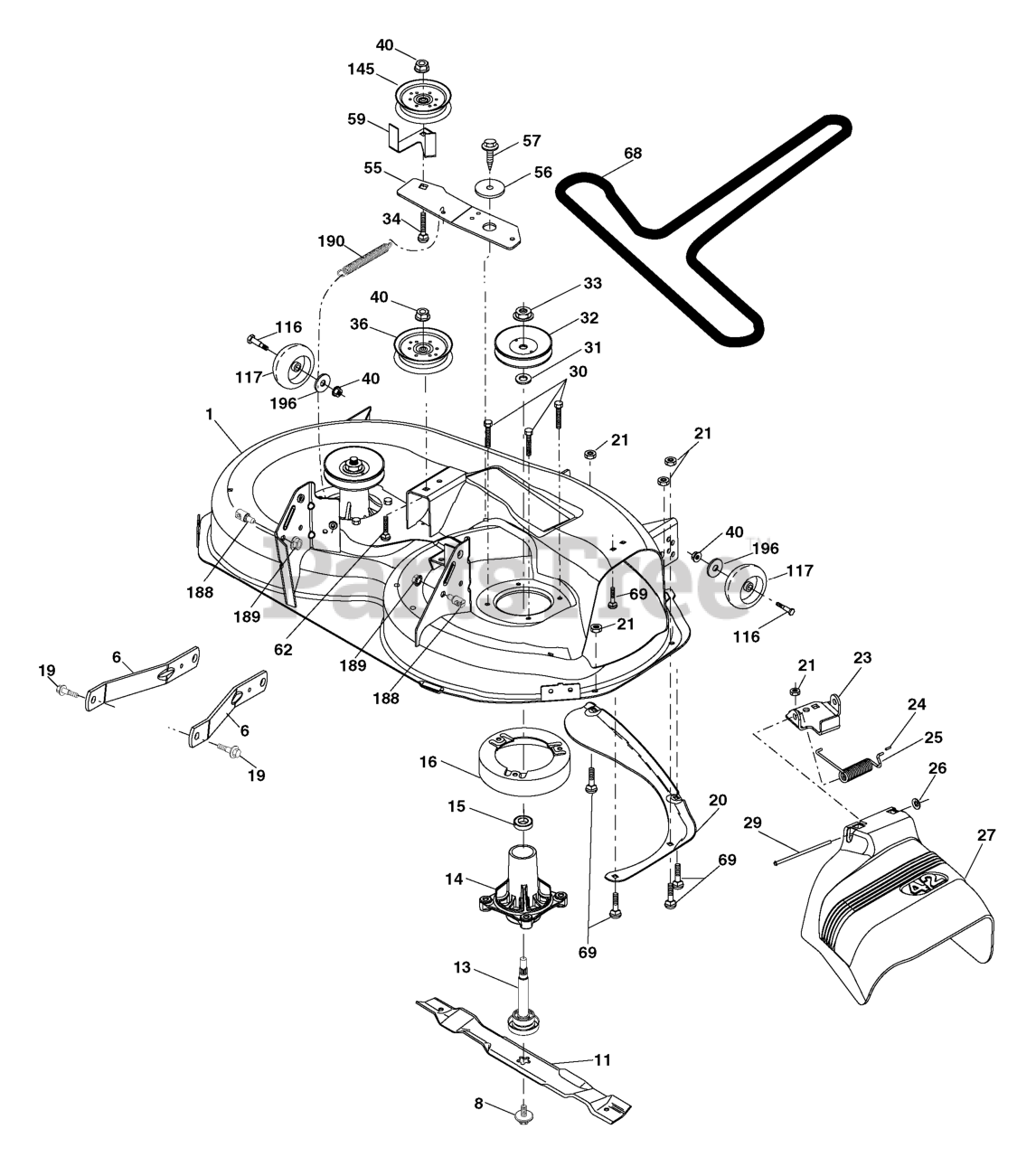Note: (Includes housing, shaft and shaft hardware only-pulley not included)