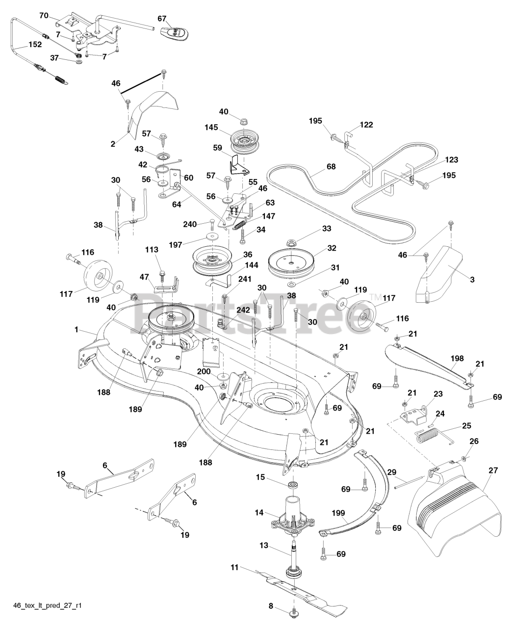 Note: (Includes housing, shaft assembly, and bearing only - pulley/nut/washer and blade bolt/washers not included)