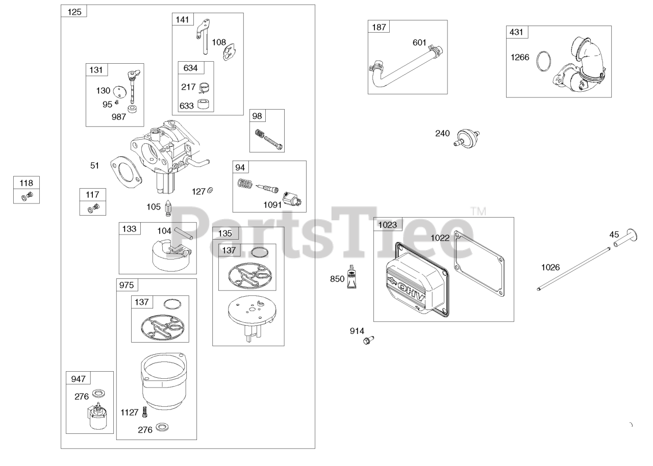 Note: Engine Gasket Set Key No. 358. Carburetor Overhaul Kit Key No. 121