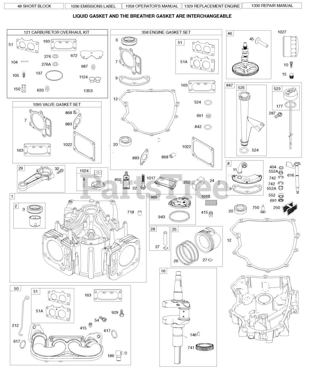 Note: (Liquid Gasket and The Breather Gasket Are Interchangeable) Included in Engine Gasket Set, Key. No. 358