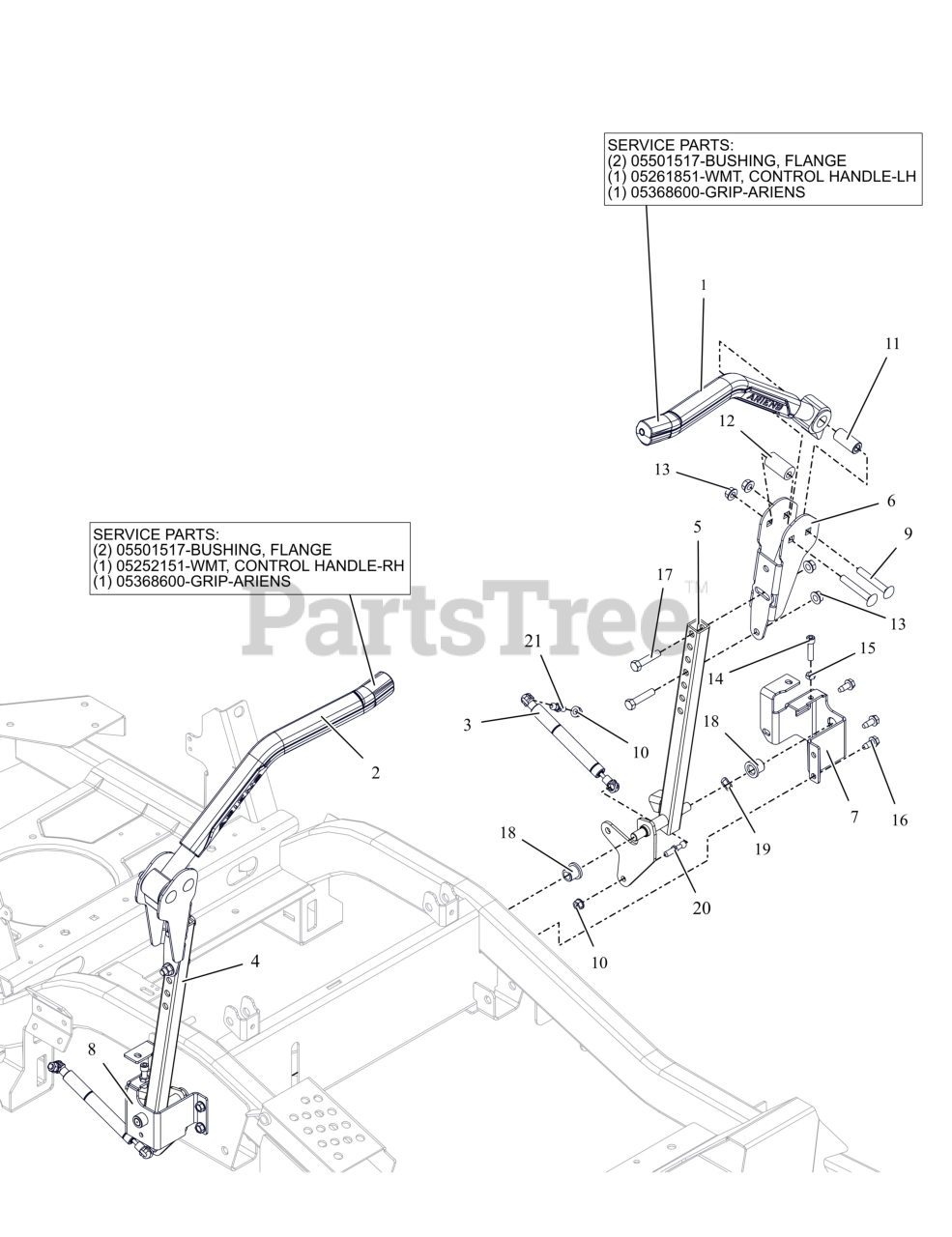991158 - Ariens Zenith 60" Zero-Turn Mower, 23.5hp Kawasaki FX (SN: 135000 - 199999) Controls Parts Diagram
