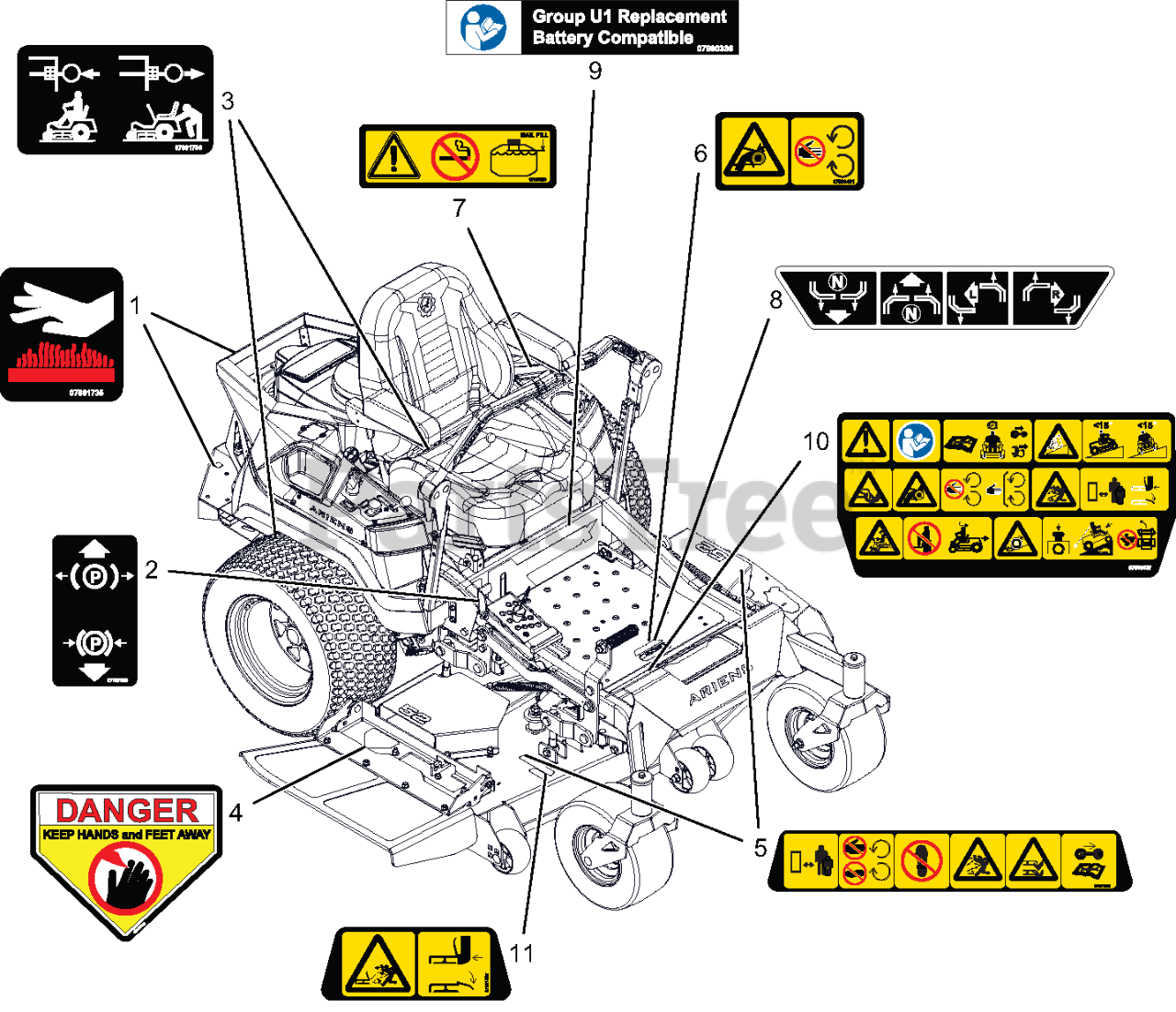 991158 - Ariens Zenith 60" Zero-Turn Mower, 23.5hp Kawasaki FX (SN: 135000 - 199999) Decals – Safety Parts Diagram