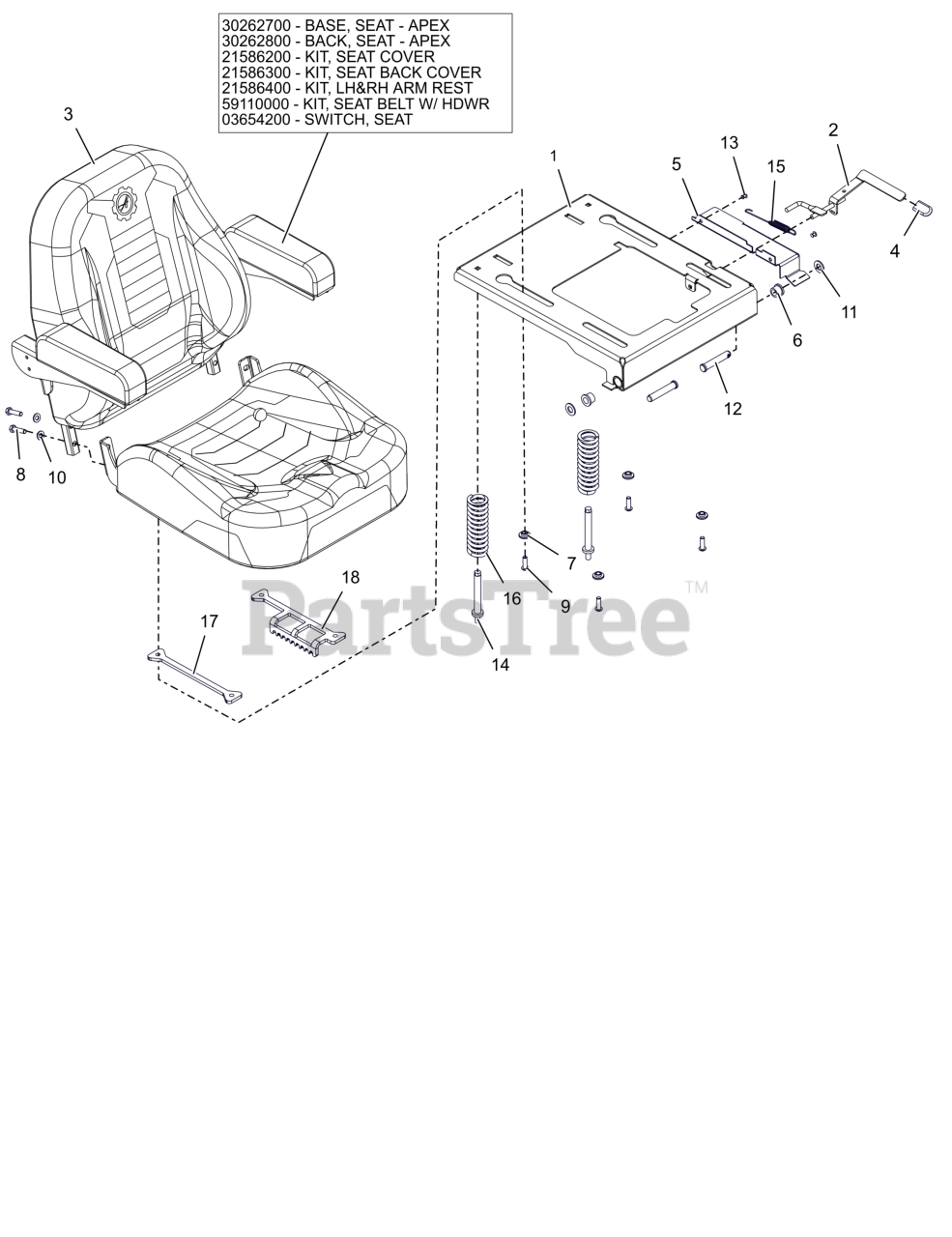 991326 - Ariens Apex 52" Zero-Turn Mower, 23hp Kawasaki FR, Side-Discharge (SN: 120000 - 134999) Seat Parts Diagram