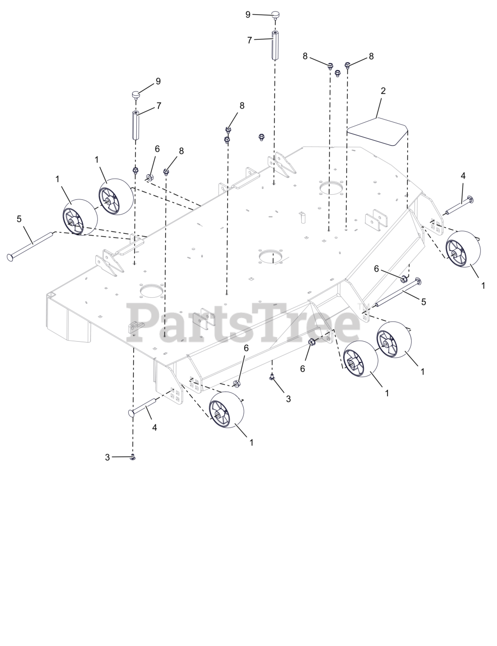 Anti-Scalp Wheels and Deck Stops - 52" Parts Diagram
